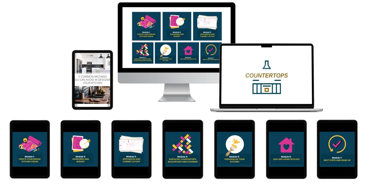 Gain the confidence to design your own kitchen via video tutorials from a seasoned kitchen design expert. From accurate measuring techniques and understanding cabinet nomenclature, to exploring wood species, selecting the perfect countertop, and incorporating personalized design details—you’ll learn everything you need to bring your vision to life with clarity and confidence.